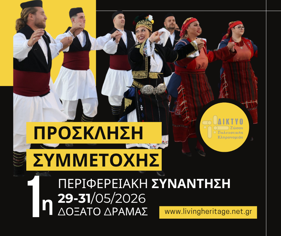 29-31/05/2026 | Η 1η Περιφερειακή Συνάντηση του Δικτύου Ζώσας Πολιτιστικής Κληρονομιάς, θα πραγματοποιηθεί στο Συνεδριακό