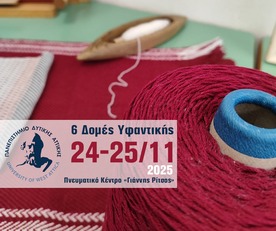 Ειδικότερα, το Πανεπιστήμιο Δυτικής Αττικής (ΠΑΔΑ), μέσω του Ερευνητικού Εργαστηρίου Μελέτης και Συντήρησης Αρχαίων και Νεότερων Πολιτιστικών Αγαθών (CULTLAB) του Τμήματος Συντήρησης Αρχαιοτήτων και Έργων Τέχνης, το οποίο είχε την ευθύνη σχεδιασμού και οργάνωσης του Τομέα της Υφαντικής στο πλαίσιο του Διαπανεπιστημιακού Προγράμματος «Ελληνική Χειροτεχνία» — «Πιλοτικό Εκπαιδευτικό Πρόγραμμα για την ανάπτυξη δεξιοτήτων που σχετίζονται με τη χειροτεχνία», παρουσιάζει τα τελικά έργα (projects) από τις 6 Δομές Υφαντικής που λειτούργησαν υπό την εποπτεία του.