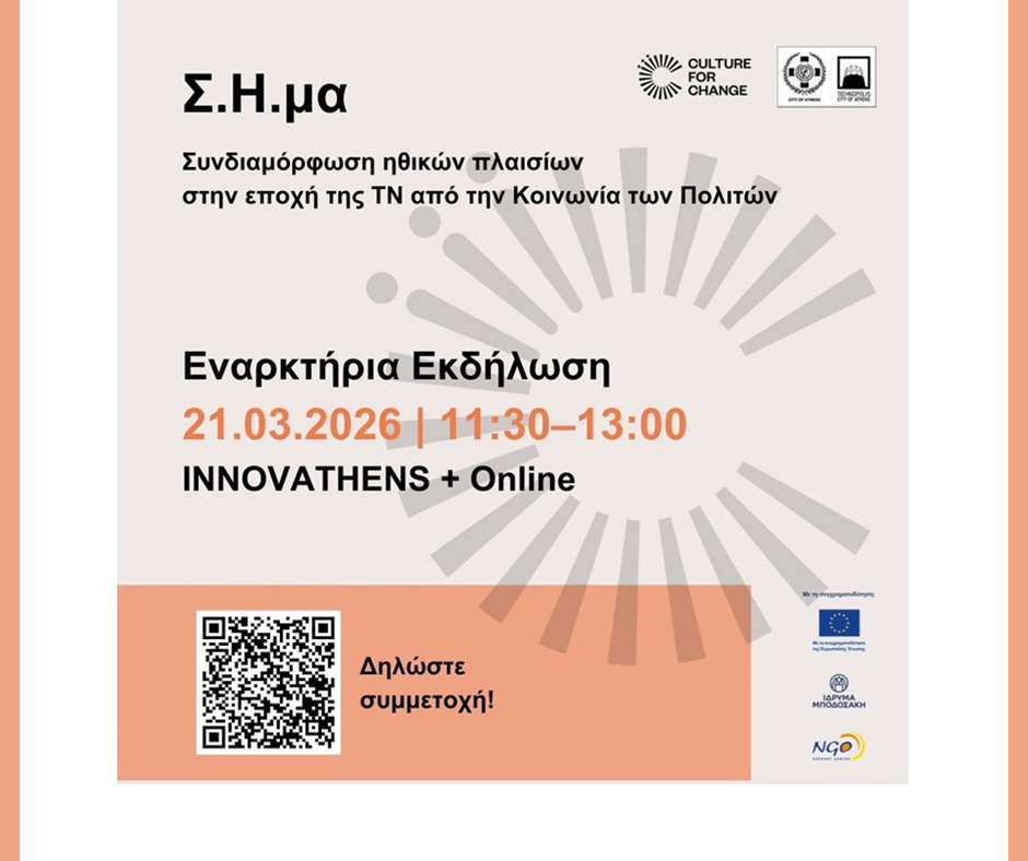 Το έργο Σ.Η.μα του Culture for Change εστιάζει στην ηθική της Τεχνητής Νοημοσύνης και στην ενεργό συμμετοχή της Κοινωνίας των Πολιτών στη διαμόρφωση των ηθικών πλαισίων που αναδύονται μαζί με τις τεχνολογικές εξελίξεις.